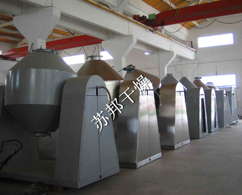 双锥回转真空干燥机是集合-干燥于一体的新型干燥机。将泠凝器、真空泵与干燥机配套;组成真空干燥装置。(如不需回收溶剂;泠疑器可不用)本机设计先进;内部结构简单;清洗容易物料能全部排出;操作简便;能降低劳动强度改善工作环境。同时因容器本身回转时物料亦转动但器壁上不积料;故传热系数较高;干燥速率大、不仅节约能源;而且物料干燥均匀充分;质量好。可广泛应用于制药、化工、食品、燃料等行业物料的干燥。符合GMP要求。